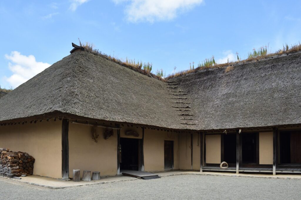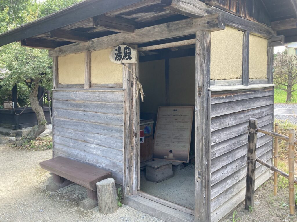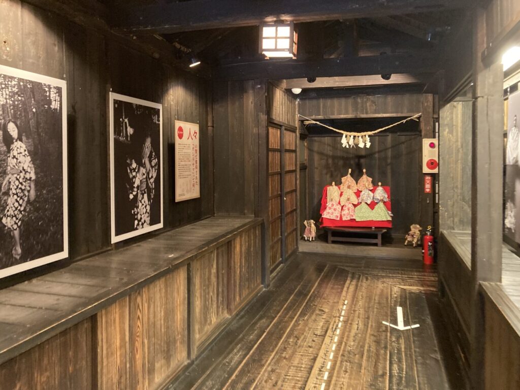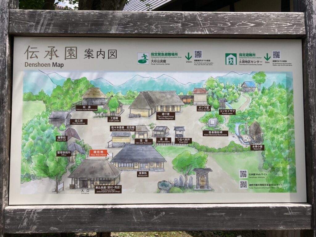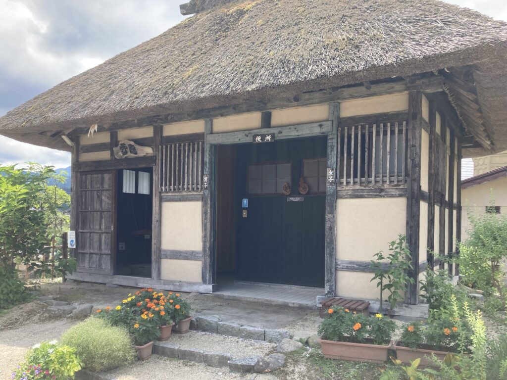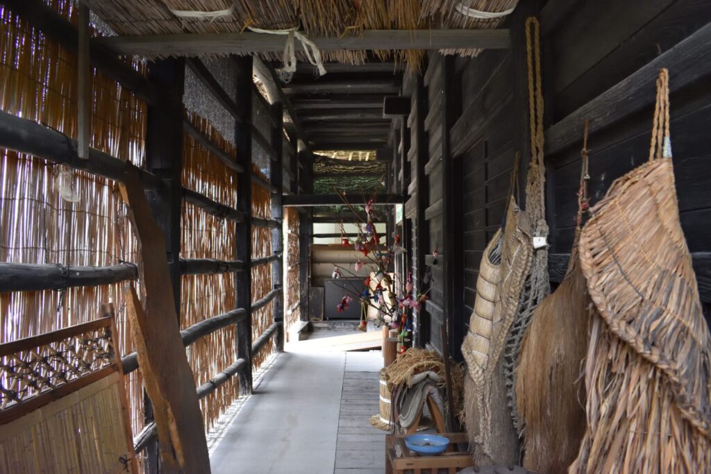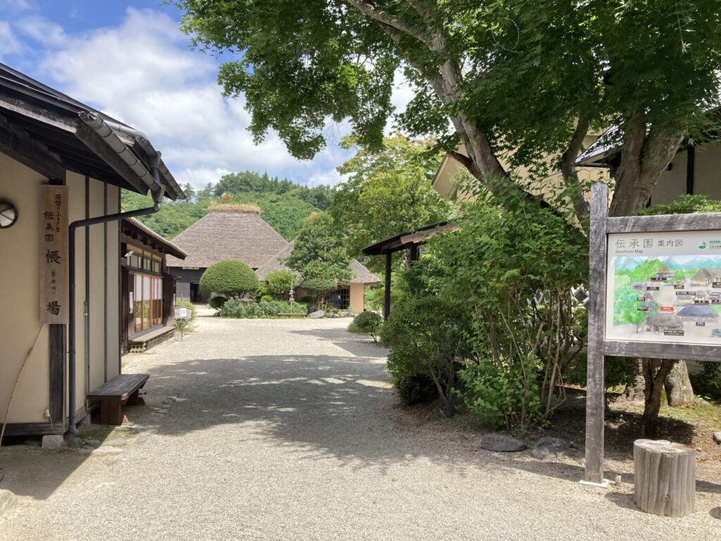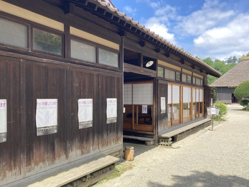 広々とした敷地に点在する茅葺屋根の古民家と、少し手作り感を感じる楽しい展示が、非日常のふるさと感を盛り上げます。