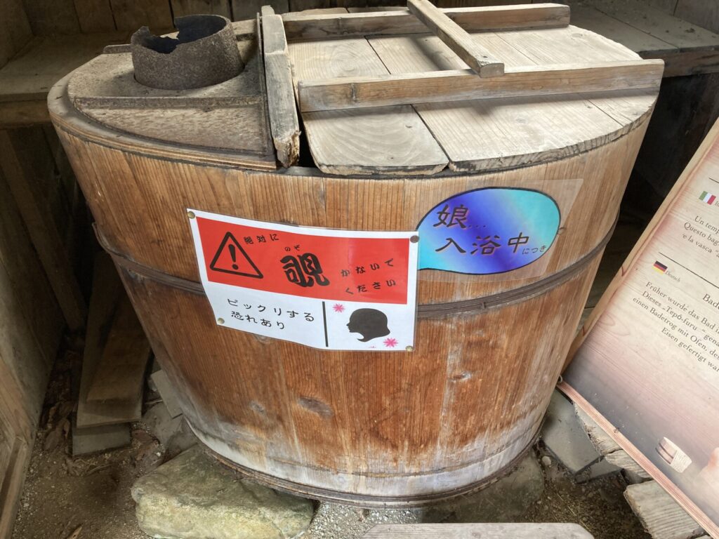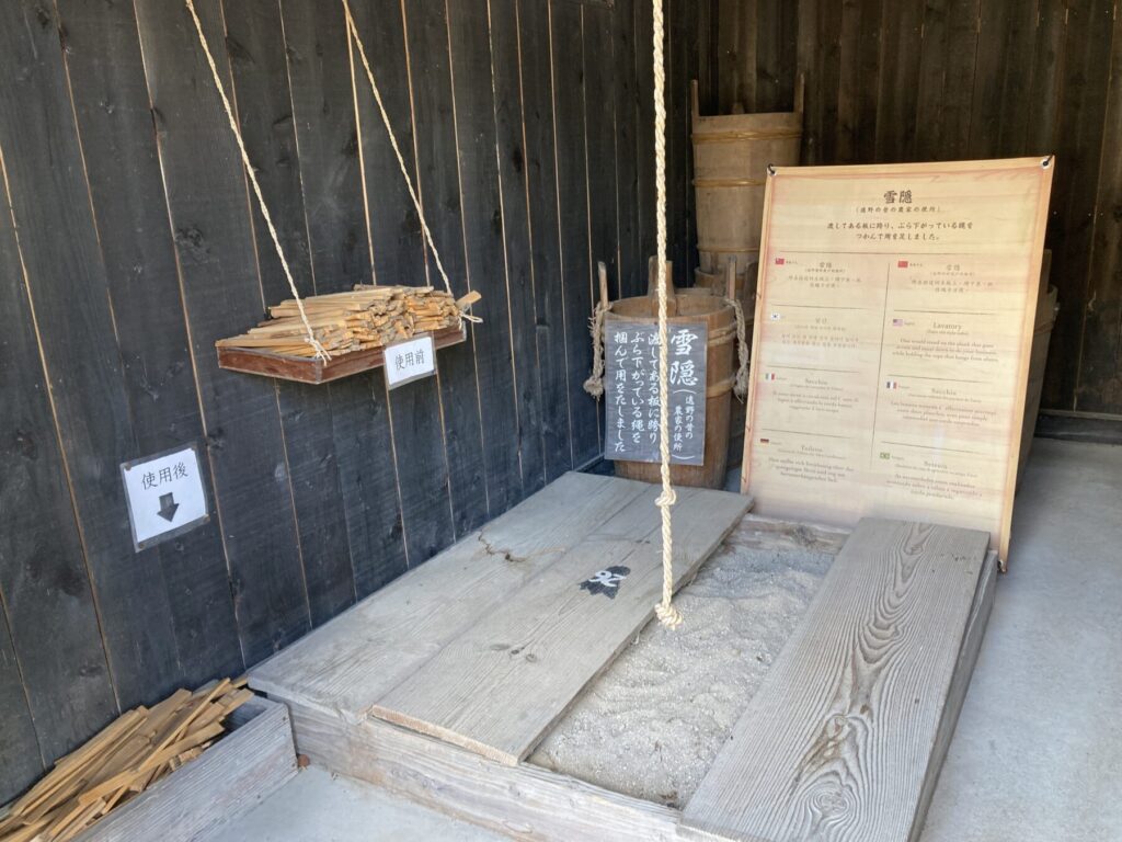 行ったときは気が付かなかったのですが、右側は本物のトイレので、左側が昔のトイレのレプリカのようです。