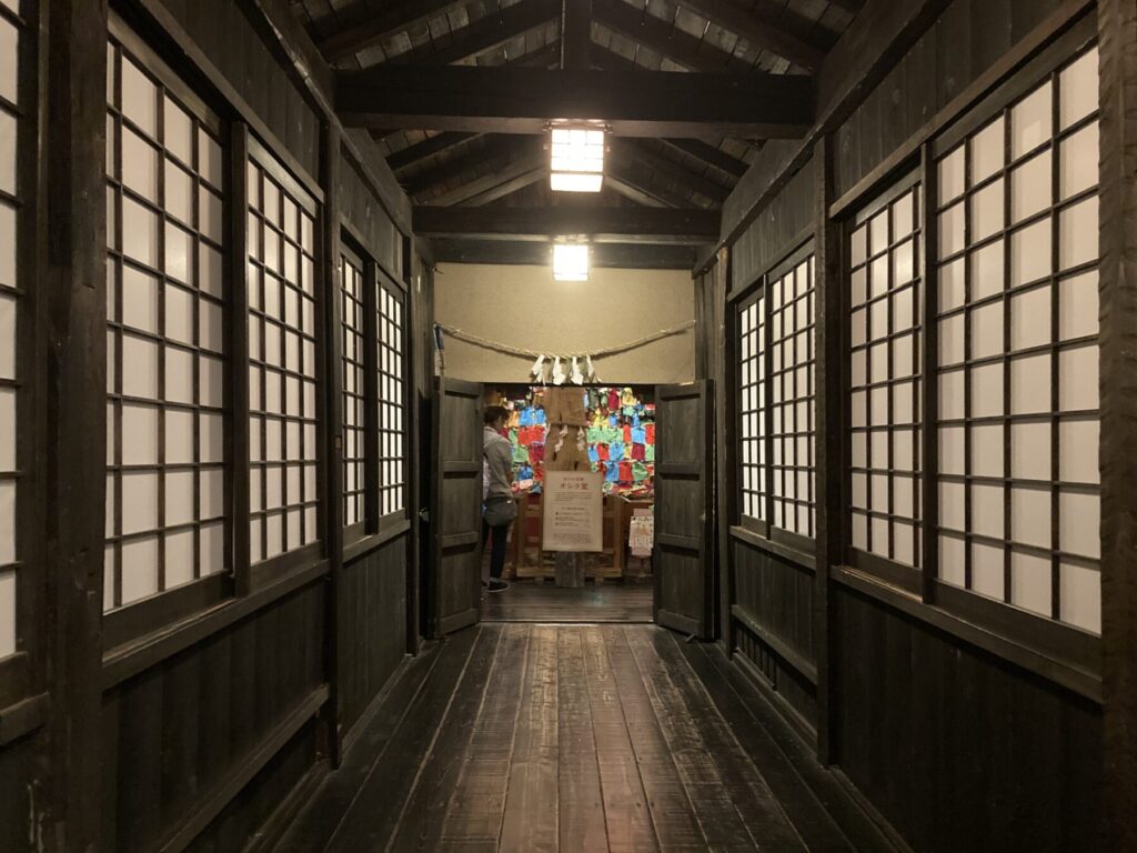 オシラサマにお祈りし長い廊下を戻ると、あれ笑い声?