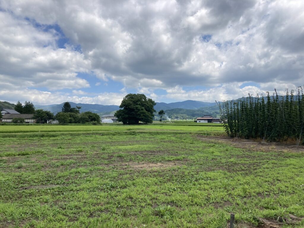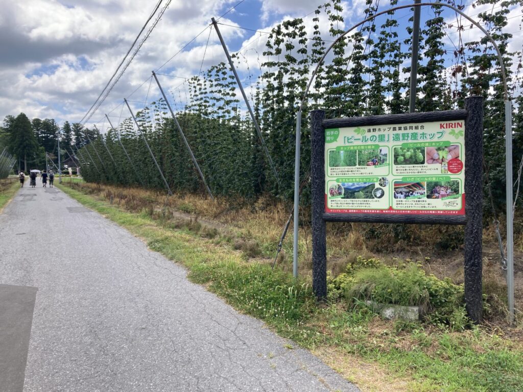 農道の脇には珍しいホップ畑が広がっており、ホップの爽やかな香りを楽しませてくれます。