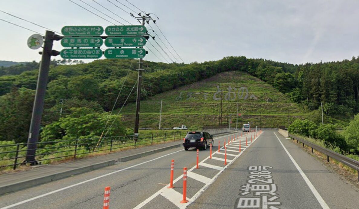 なお、左折すると『道の駅 遠野風の丘』がT字路から800mほどのすぐ近くにあり、遠野名物が沢山でとても楽しいので、行きか帰りかに立ち寄るのが良いでしょう。