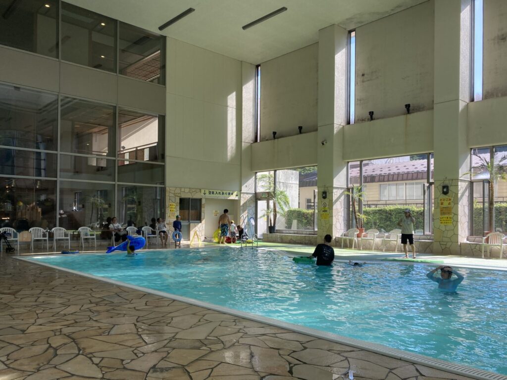 とは言っても、室内プールは水温が30℃程度と適度に管理され、多分エアコンも効いているのかな?猛暑の外とは隔絶した快適さでこれはこれで良し。