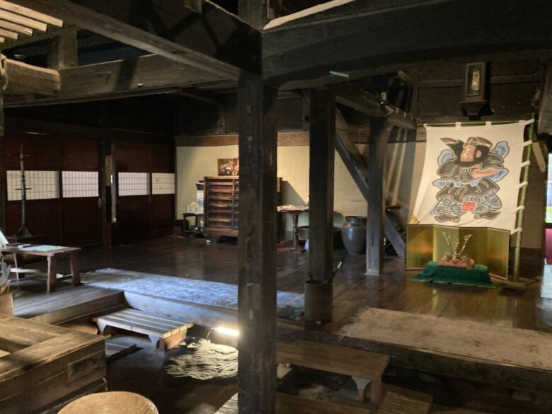 玄関をくぐった途端に広い土間黒々とした立派な柱に圧倒され、この建物が積み重ねた歳月に感動を覚えます。