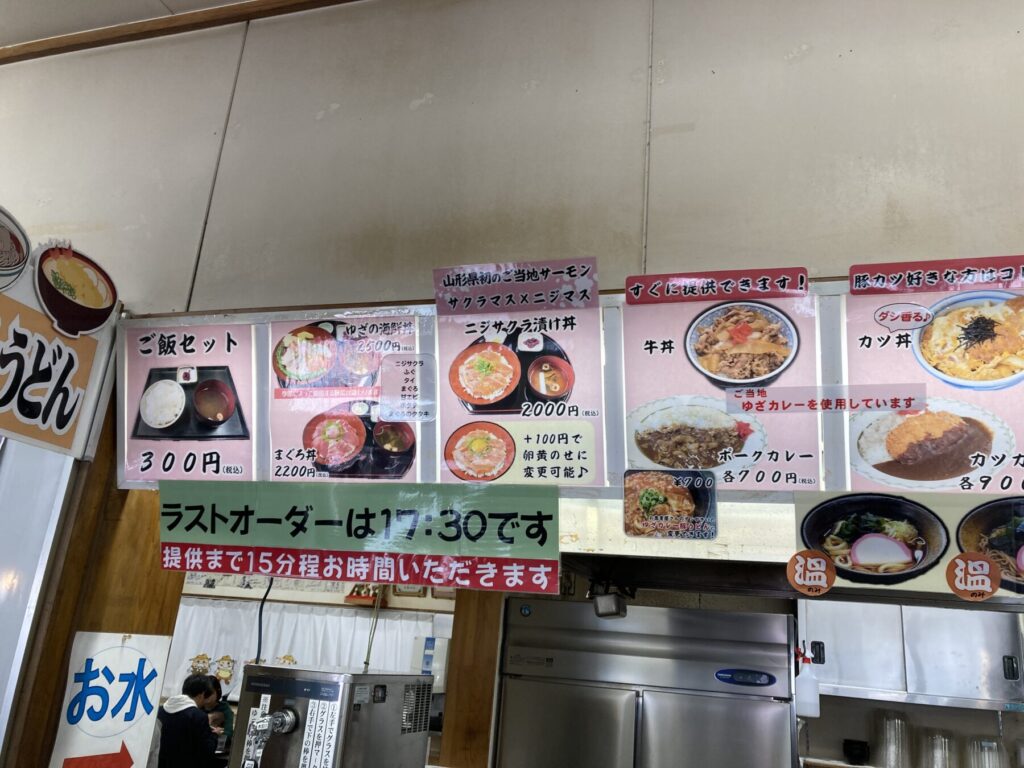 カツ丼・牛丼・蕎麦などの普通の食べ物だけでなく、遊佐ならではの海鮮丼やニジサクラ漬け丼などもあります。